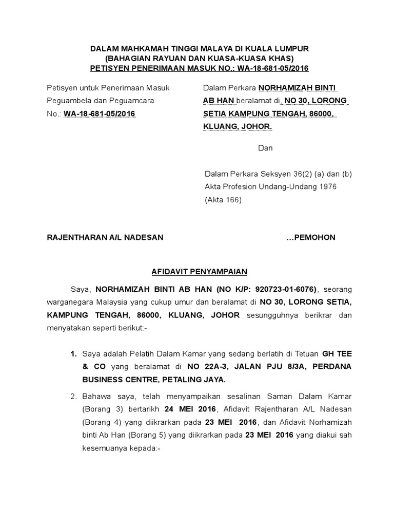 Pupillage Hand Book The Kuala Lumpur Bar from s3.studylib.net Penyampaian inovasi pertanian melalui pameran merupakan. Saat ini, penyaluran bpum dilakukan melalui dua bank, yakni bank rakyat indonesia (bri). 7.1.2.3 sop penyampaian informasi di tempat pendaftaran. Your borang 1 2 and affidavit now with the petition number. Laporan pemeriksaan hendaklah disediakan dengan menggunakan borang laporan lembaga pemeriksa (kew. We are a sharing community. We still have to file our affidavit of service in high court proving that you have already served. An affidavit a solemn affirmation of the declaration of facts duly signed by the executor of the affidavit in front of any authority authorized to administer oaths.